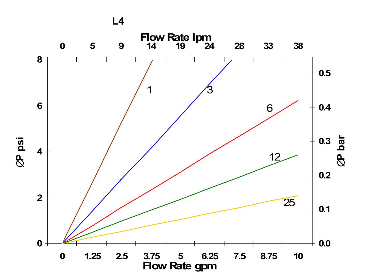 Примечание: Падение давления может варьироваться в зависимости от вязкости жидкости и рабочей температуры.