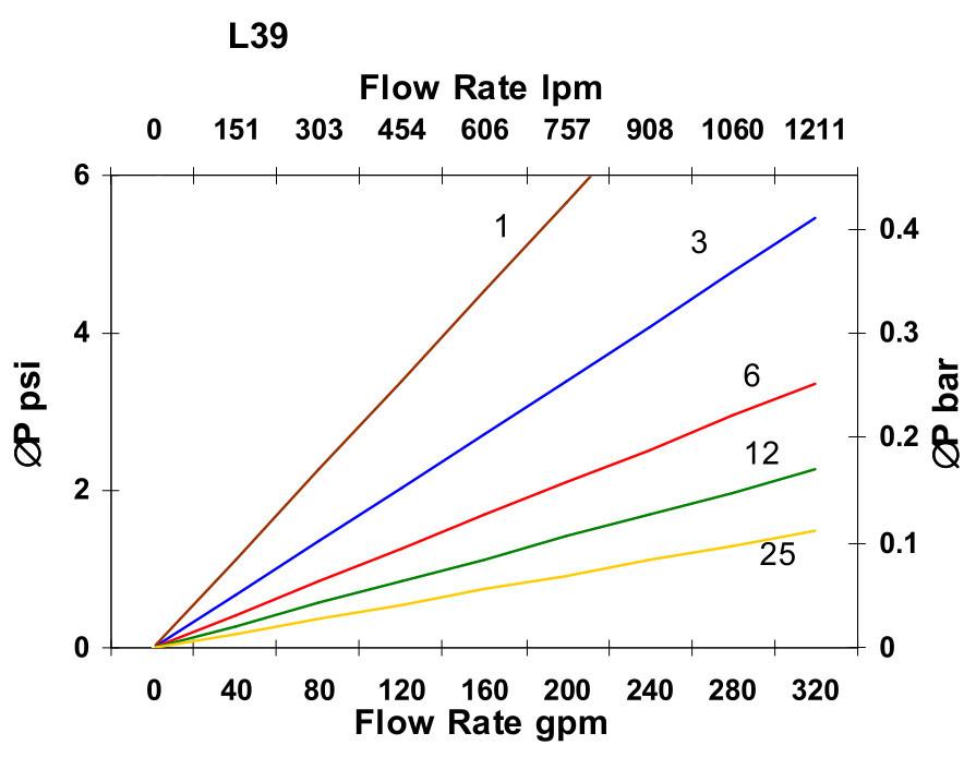 Примечание: Падение давления может варьироваться в зависимости от вязкости жидкости и рабочей температуры.