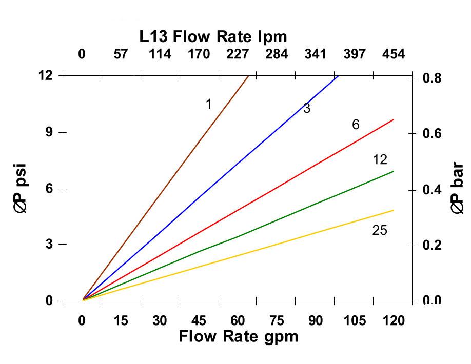 Примечание: Падение давления может варьироваться в зависимости от вязкости жидкости и рабочей температуры.