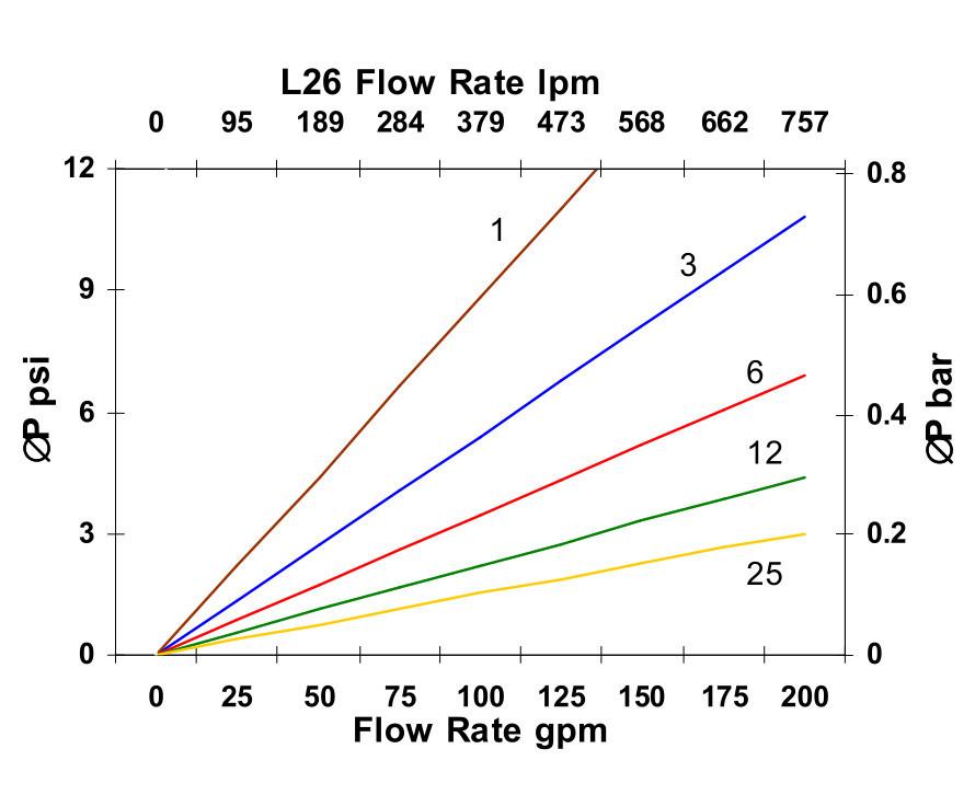 Примечание: Падение давления может варьироваться в зависимости от вязкости жидкости и рабочей температуры.